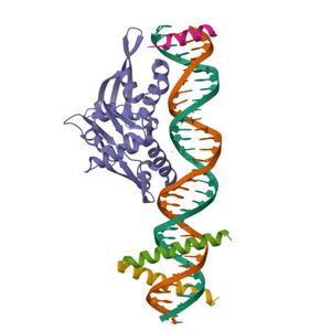 | Title | Isoreticular co-crystal 1 with asymmetrical expanded duplex (31mer) containing insert sequence ATGAGTCATA and loaded with mutated Bzip region of GCN4 transcription factor |